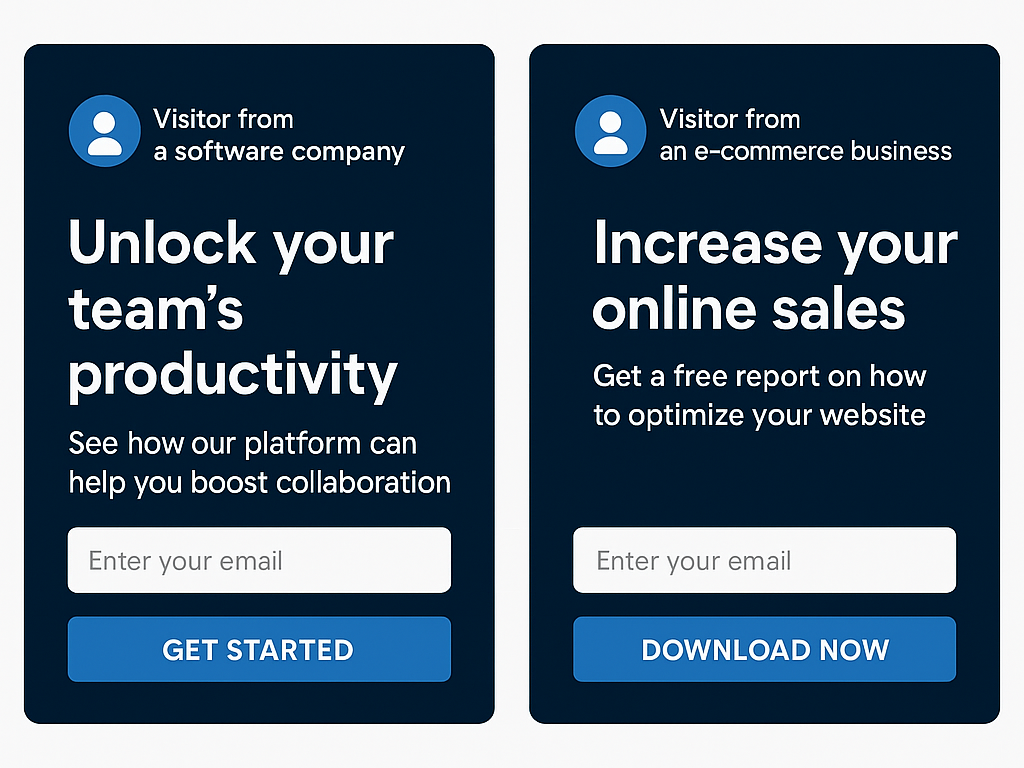 - Dynamic CTAs and offers: Tailor calls-to-action based on account attributes. For large enterprises, use “Request a Demo tailored for Enterprise” instead of “Start Free Trial.” If the visitor is in active sales discussions, show options like “Schedule your solution workshop.”