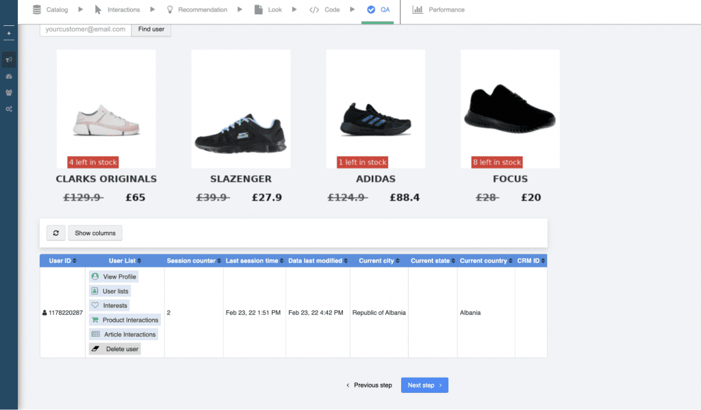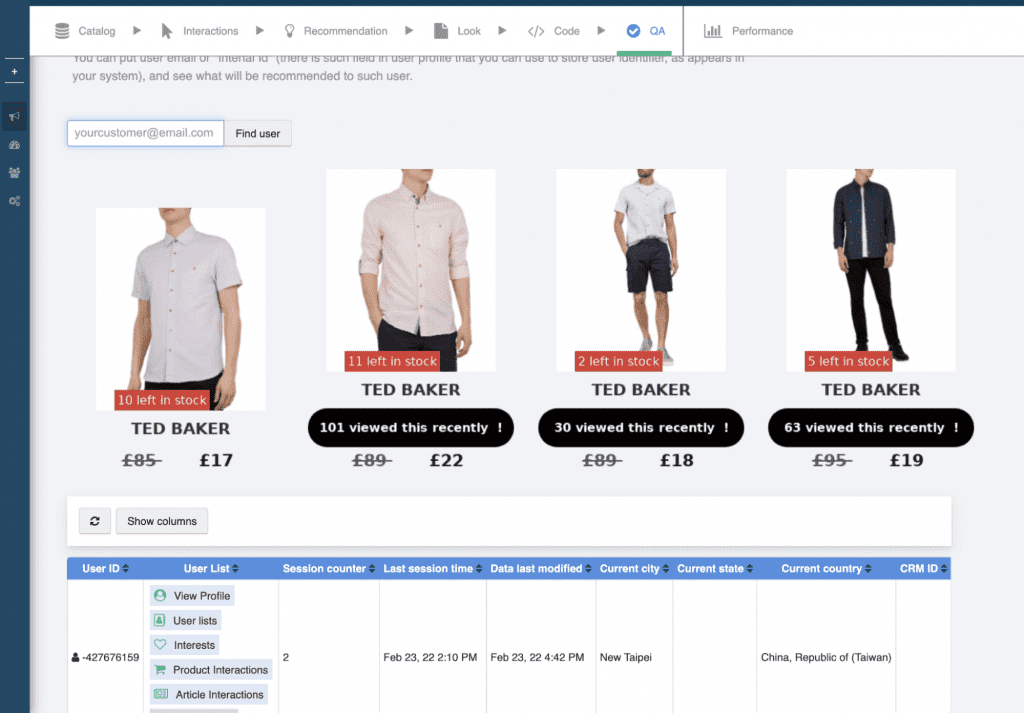 You can also look at more detailed data about the customer, and why they’re seeing the products they’re seeing in this particular recommendation, and compare it to other customers.