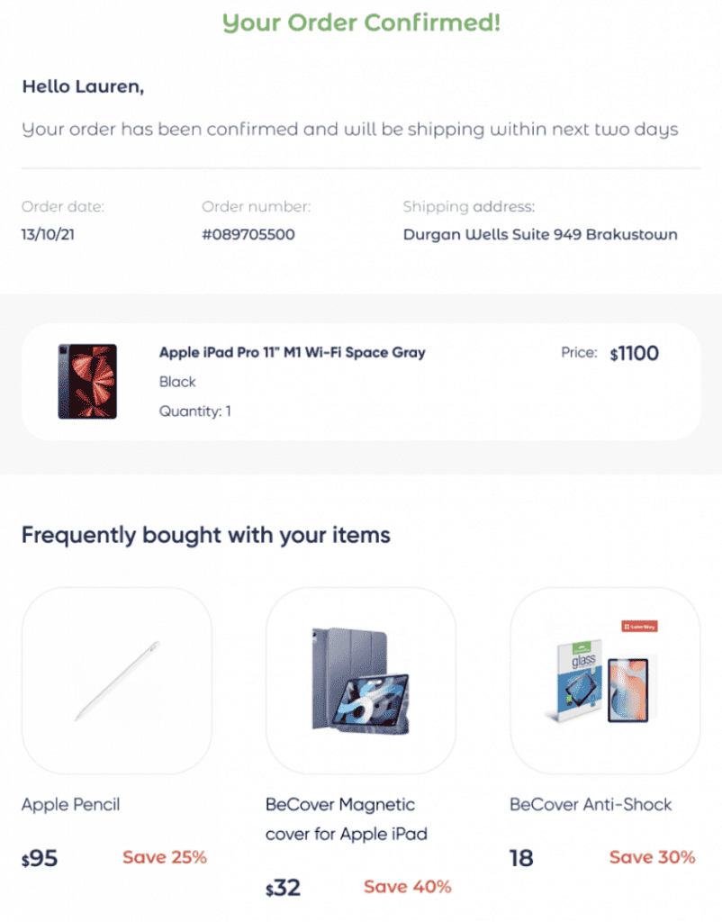 This means your emails can go from static to valuable marketing assets with relatively little effort. Really, this type of email personalization is a no-brainer that every store should have.