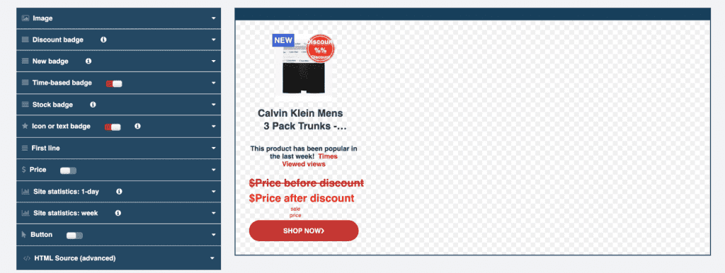 First, you’ll select the Get-code email recommendation wizard in Personyze, and design your recommendation. This part is no different than any other recommendation, where you use the Personyze content editor to get the design to perfectly match your site.