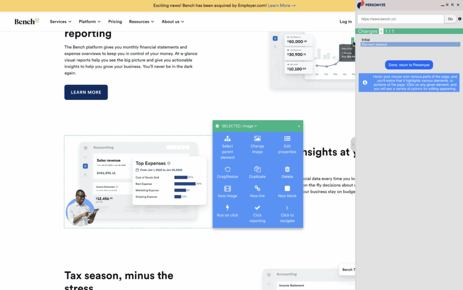 A WYSIWYG (What You See Is What You Get) page editor is a tool that allows you to create and edit existing page content in a way that visually represents how the final output will appear. In essence, it eliminates the need to understand complex code, enabling you to seamlessly and quickly tailor the page for targeted personalization, visitor-specific experiences, or to efficiently conduct A/B tests for new page designs, content variations, and more.