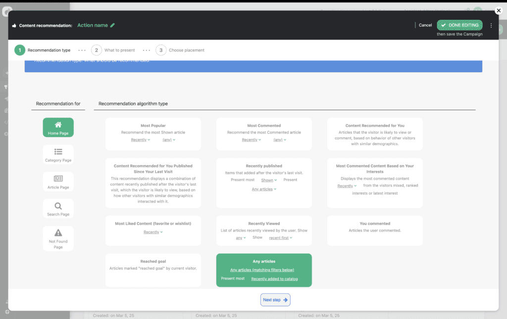 Display dynamic, AI-based content recommendations in popups or embedded directly into page content. Choose from numerous responsive templates, including dynamic options that highlight publication date, popularity, and more.
